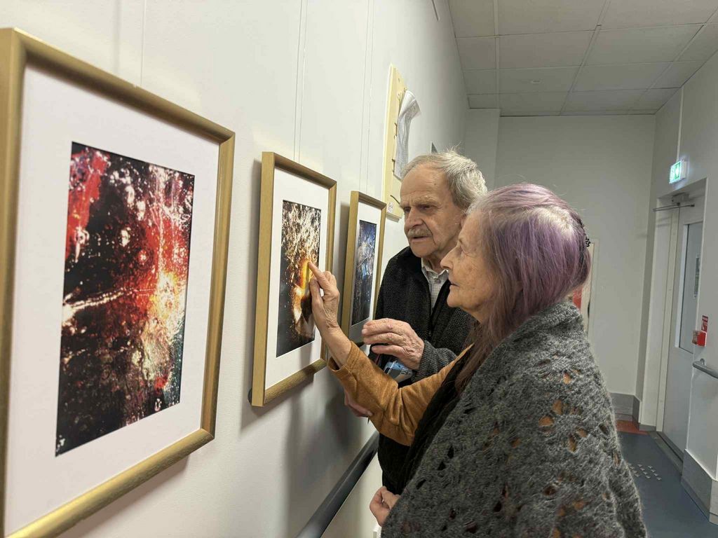 Külastajad tutvuvad näituse väljapanekuga